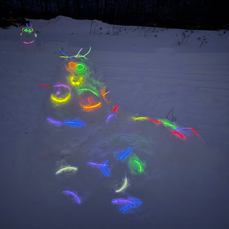 Kids and grown-ups alike had a great time building glowing snow creatures at our Glow-In from 4-6pm on 2/21! We crafted our masterpieces then put on the final touch of glow sticks and then waited until dark to watch them come to life. So fun! To top it off we had a great bonfire and s'mores and some hot cocoa. Good times! Thank you all who attended and helped out! Tremendous!